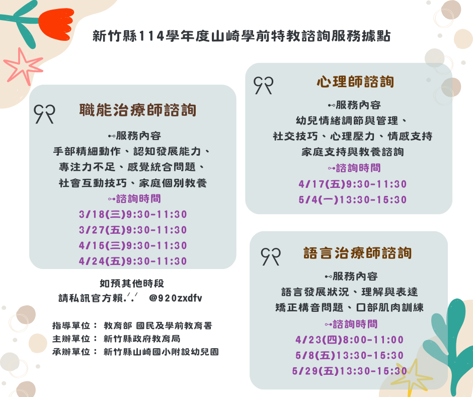 新竹縣114學年度山崎學前特教諮詢服務據點